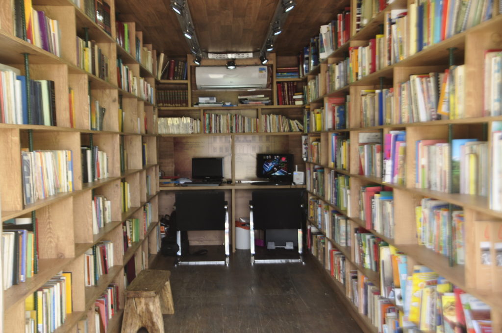 O Container com Letras nasceu em outubro de 2016. É um projeto de “Biblioteca de Compartilhamento”, ou seja, é um processo de renovação permanente. Funciona em um espaço sustentável de 12m, com iluminação, móveis feitos com madeira reaproveitado e, tem uma tenda acoplada. No mesmo ambiente o leitor tem oportunidades de estudo, leitura e lazer sem qualquer custo. Estão disponíveis cerca de15 mil livros de gêneros diversos como literário, didático entre outros, e todos de modo aleatório.